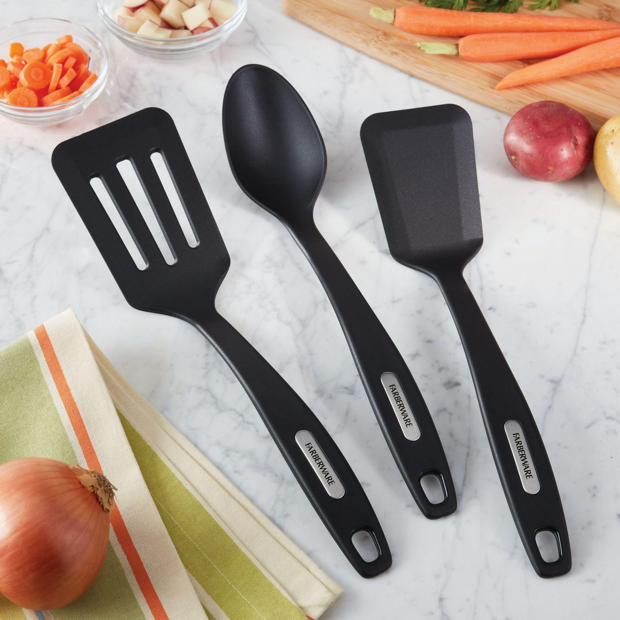 Set of 3 Nylon Tools, Slotted Turner, Short Turner, Basting Spoon Set of 3 Nylon Tools, Slotted Turner, Short Turner, Basting Spoon Set of 3 Nylon Tools, Slotted Turner, Short Turner, Basting Spoon